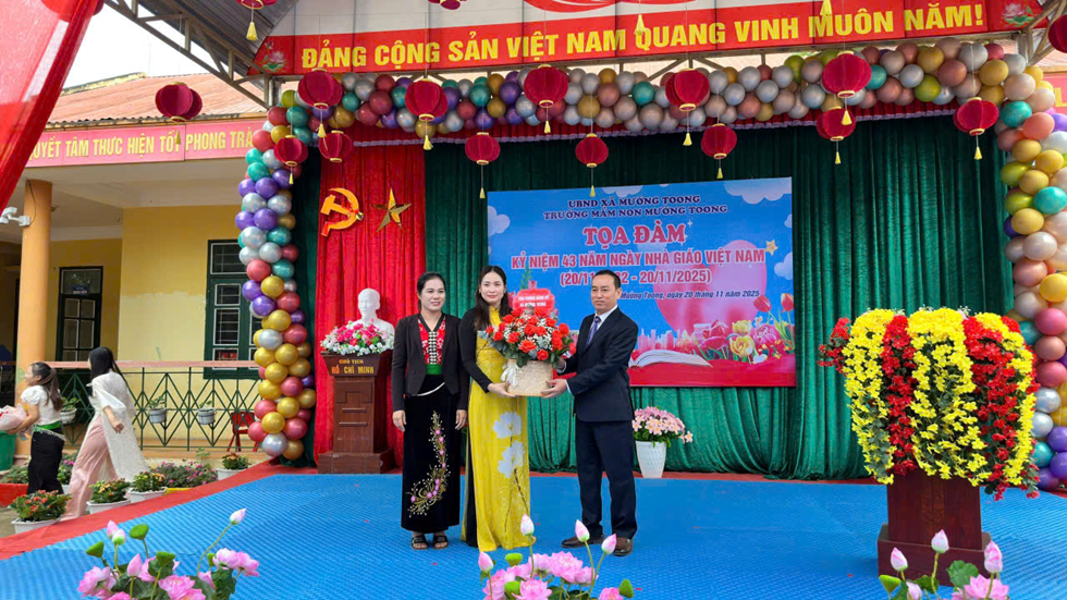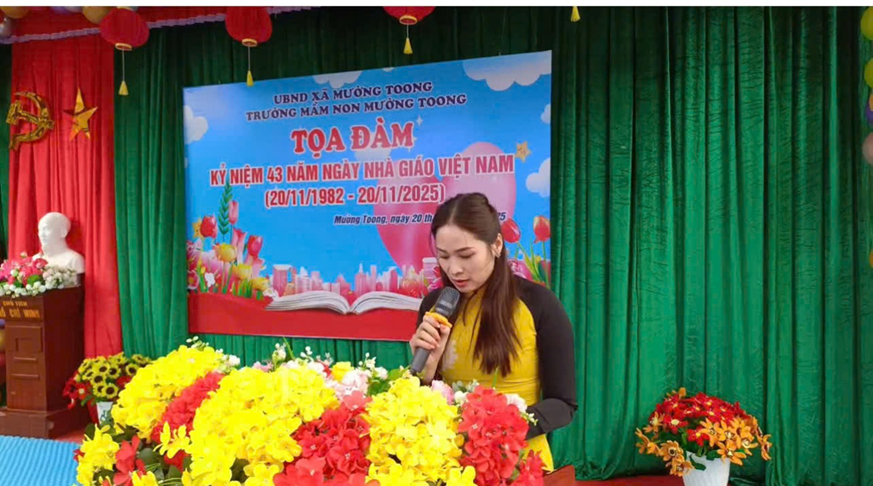 Hòa trong không khí tri ân thầy cô giáo trên khắp cả nước, sáng nay, trường mầm non Mường Toong long trọng tổ chức buổi tọa đàm kỷ niệm 43 năm Ngày Nhà giáo Việt Nam 20/11. Đây là dịp để cô và trò cùng nhìn lại chặng đường phấn đấu, gửi lời tri ân sâu sắc đến những người lái đò thầm lặng đã dành trọn tâm huyết cho sự nghiệp trồng người.
