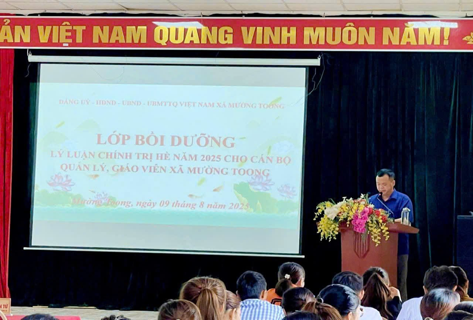 Nhằm nâng cao nhận thức chính trị, cập nhật thông tin thời sự và củng cố năng lực công tác cho đội ngũ làm công tác giáo dục, trong 2 ngày 9 – 10 tháng 8 năm 2025, UBND xã Mường Toong đã khai mạc lớp bồi dưỡng, tập huấn chính trị hè năm 2025 dành cho cán bộ quản lý, giáo viên và nhân viên đang công tác tại các trường học trên địa bàn.