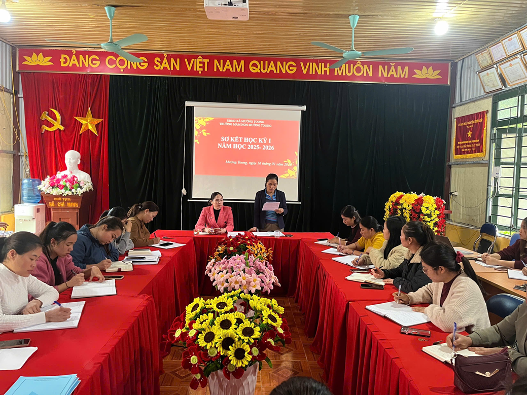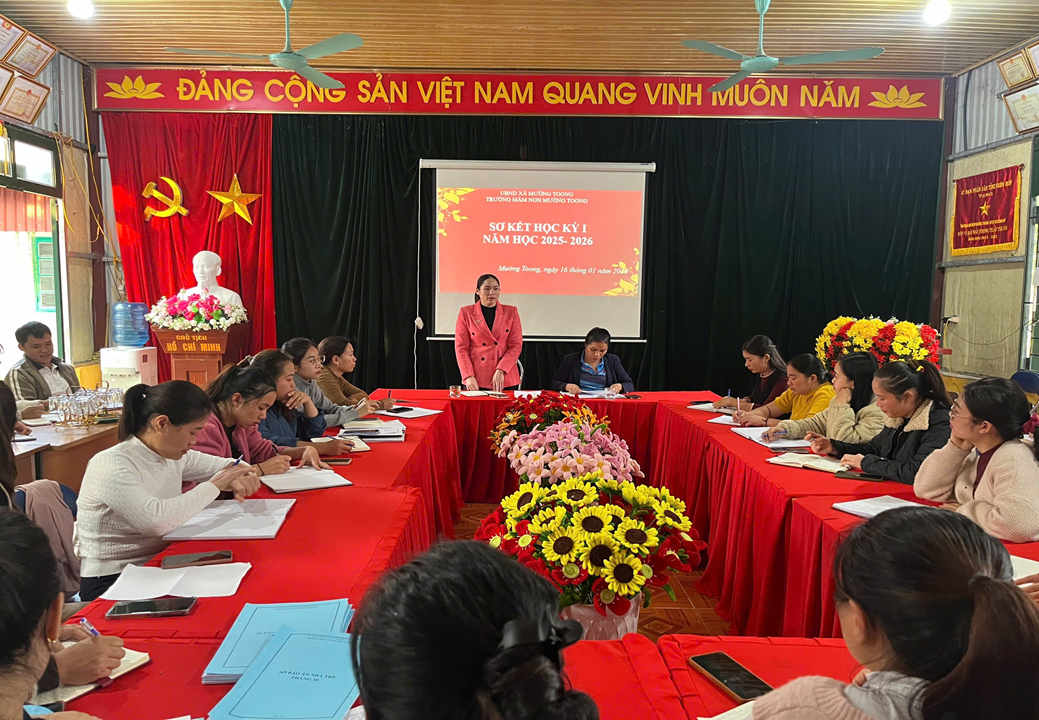 📌 Thực hiện kế hoạch năm học 2025–2026, Trường Mầm non Mường Toong đã tổ chức Hội nghị sơ kết học kỳ I nhằm đánh giá kết quả thực hiện nhiệm vụ giáo dục trong nửa đầu năm học, đồng thời đề ra phương hướng, nhiệm vụ trọng tâm cho học kỳ II.