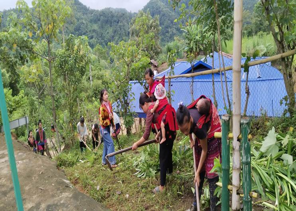 Tin bài lao động đầu năm học của trường mầm non Mường Toong
