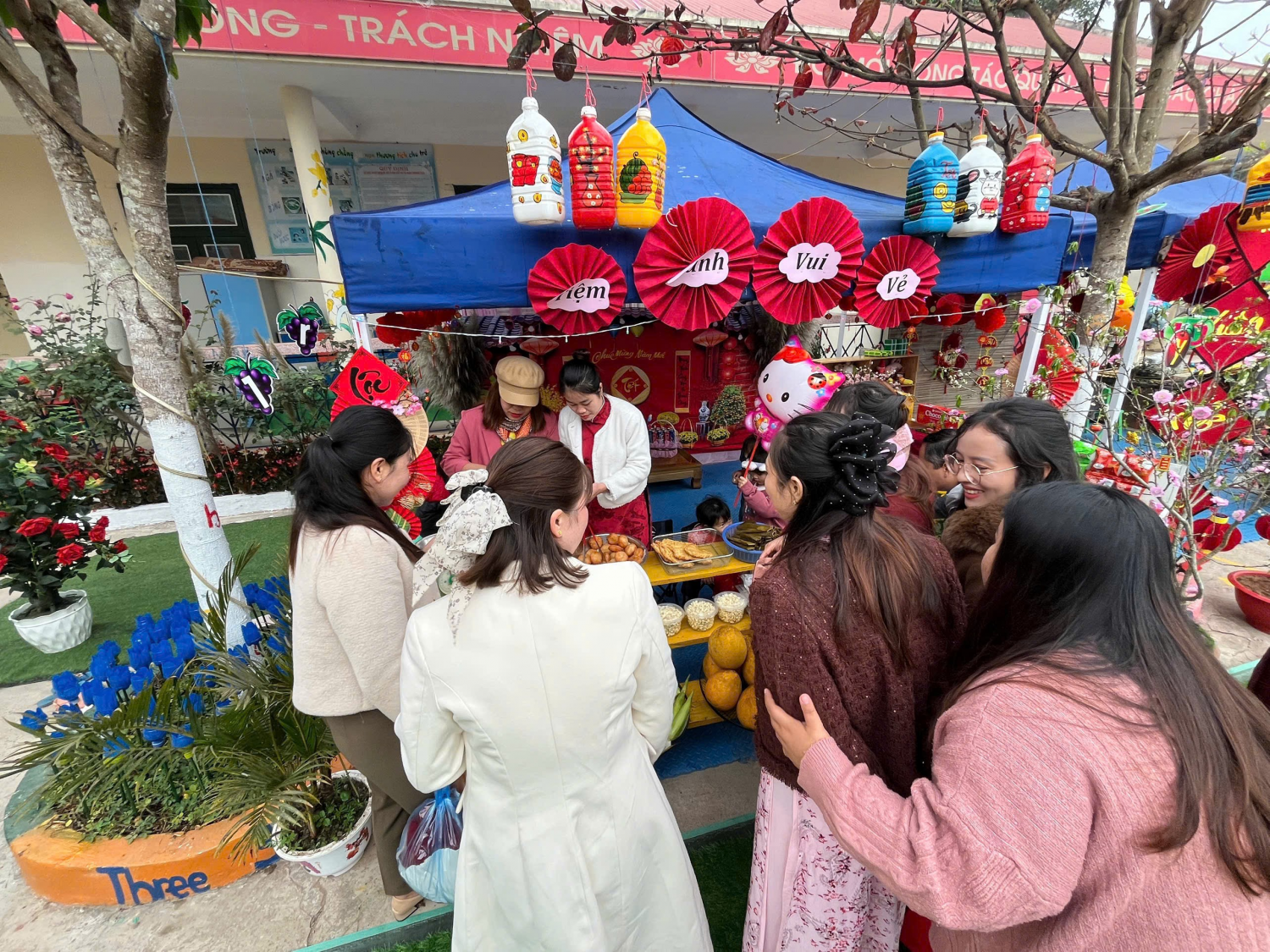 🍱 Tại hội chợ xuân, các cô giáo và học sinh nhà trường đã trực tiếp tham gia bán nhiều mặt hàng phong phú, được chế biến đảm bảo vệ sinh an toàn thực phẩm ✅, phù hợp với trẻ em và phụ huynh. Các gian hàng đa dạng, hấp dẫn gồm: